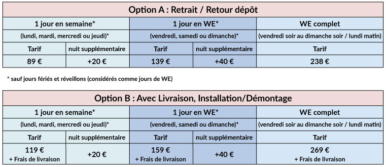 Les prix sont les mêmes pour 1 journée ou 1/2 journée